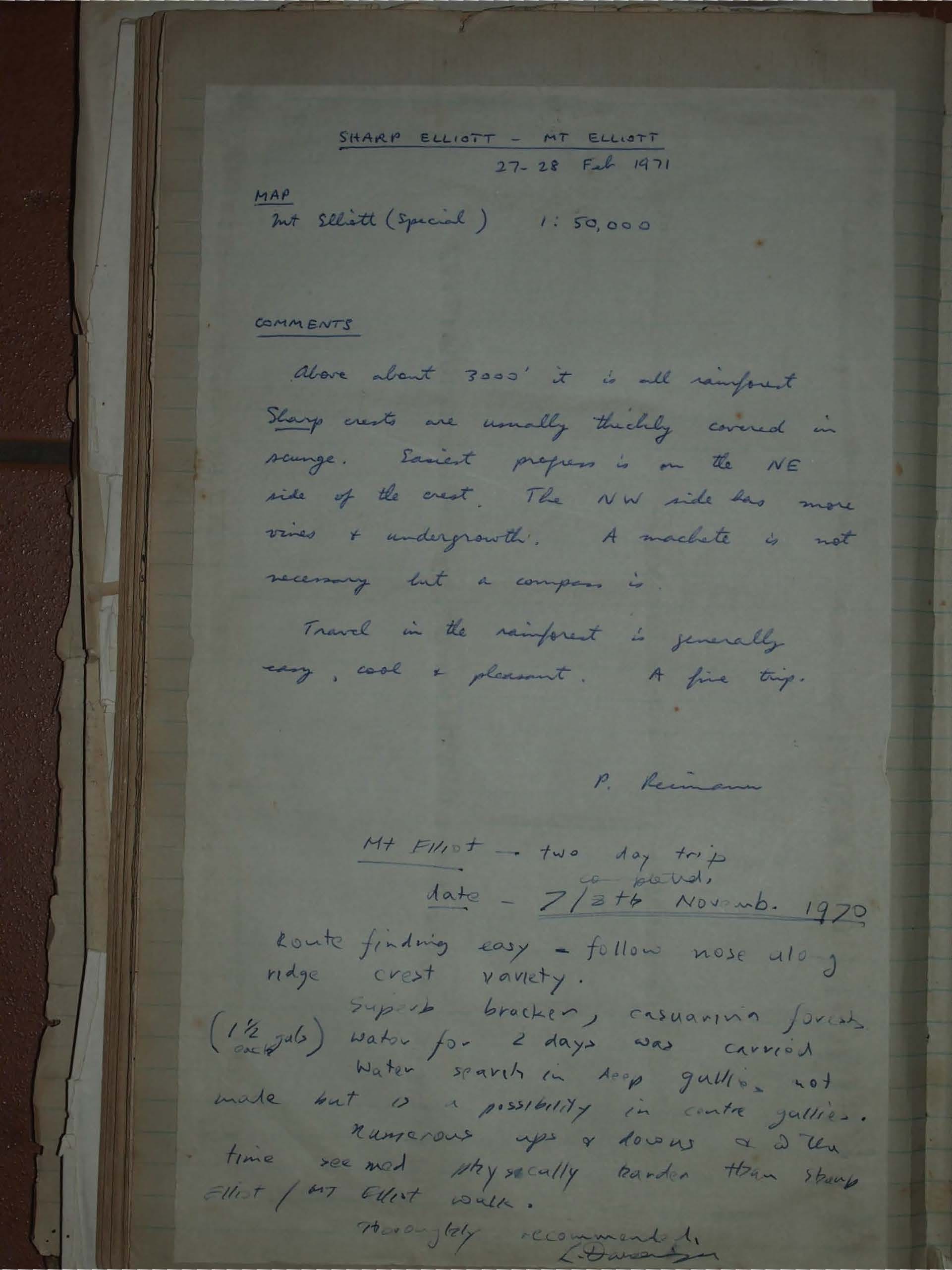The rugged Sharp Elliott, The Shoulder, and Mt Elliott route near Townsville. Rainforest above 900 m, ridge crests, bracken and casuarina forests, and challenging ups and downs make this two-day hike rewarding. A compass is essential for navigation in this classic North Queensland adventure.
