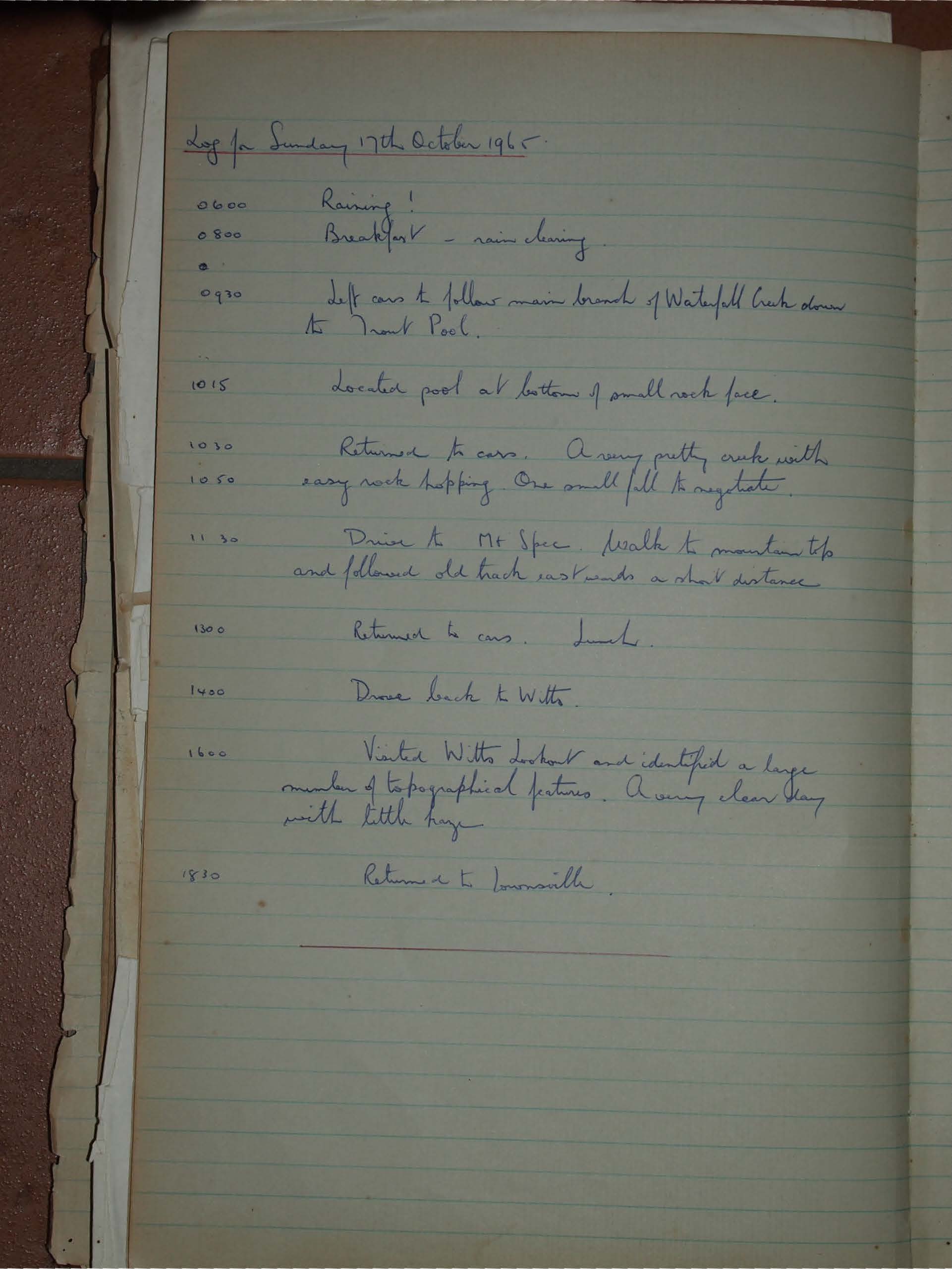 Log for Sunday 17th October 1965.