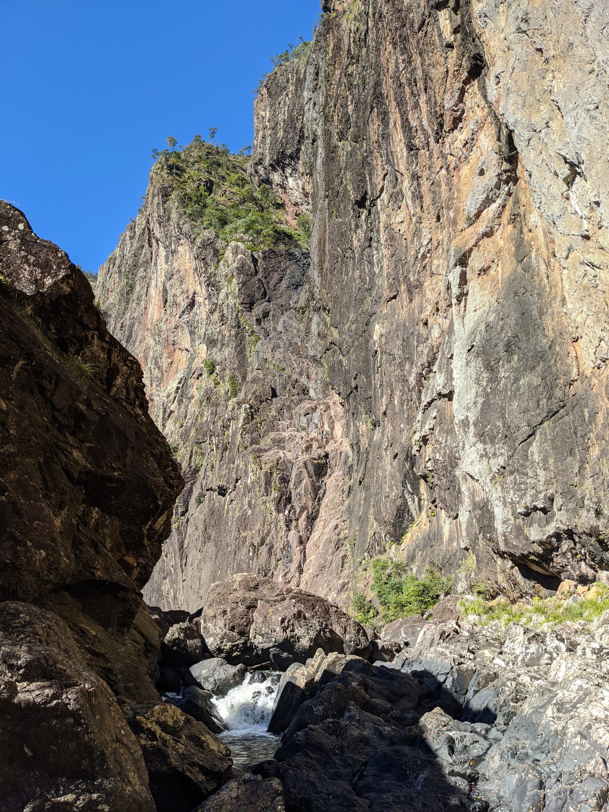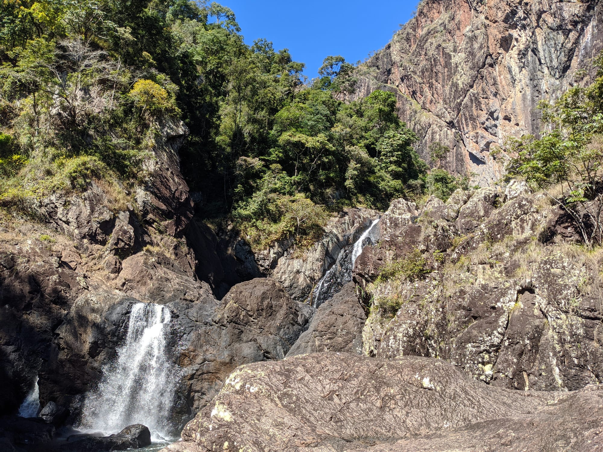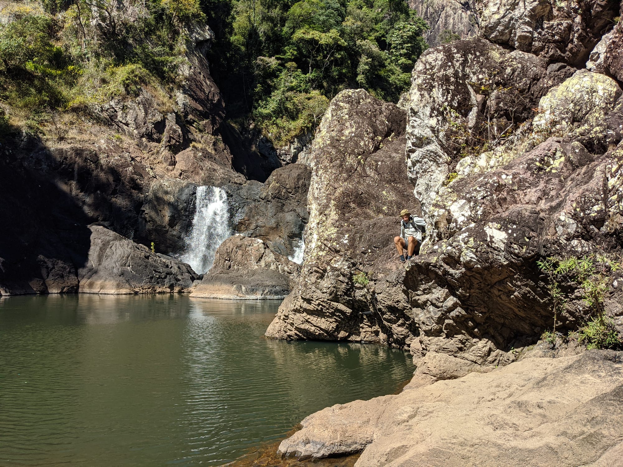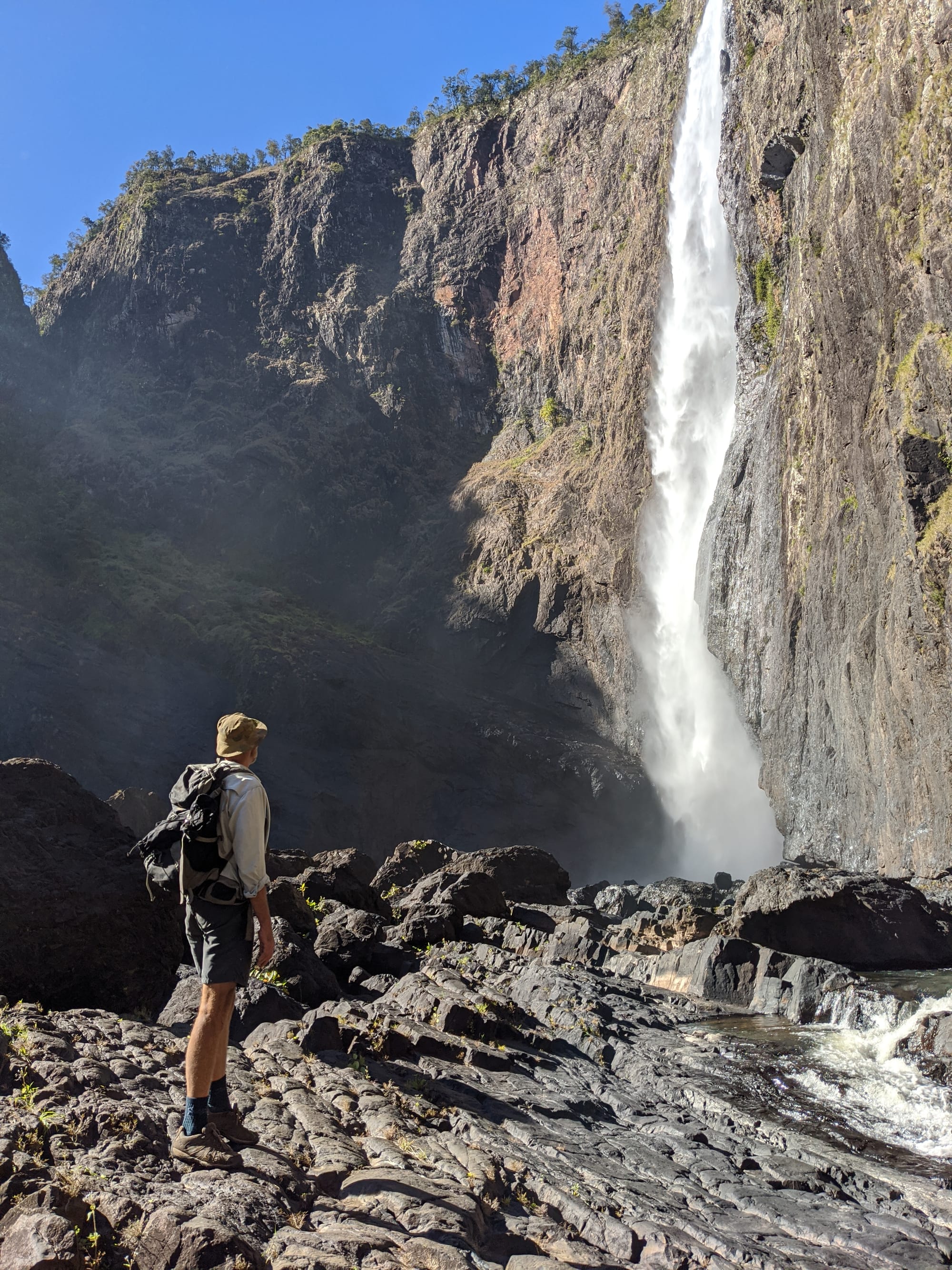 We started at Wallaman Falls and took the main track down to the base of the falls, where the sheer scale of the cliff and the spray from the plunge pool made for a spectacular beginning. After enjoying the view at the base, we had a look at the start of the old 1989 route that heads up the usually dry side of the waterfall - out of curiosity rather than commitment. From there, we turned our attention downstream and began exploring Stoney Creek.