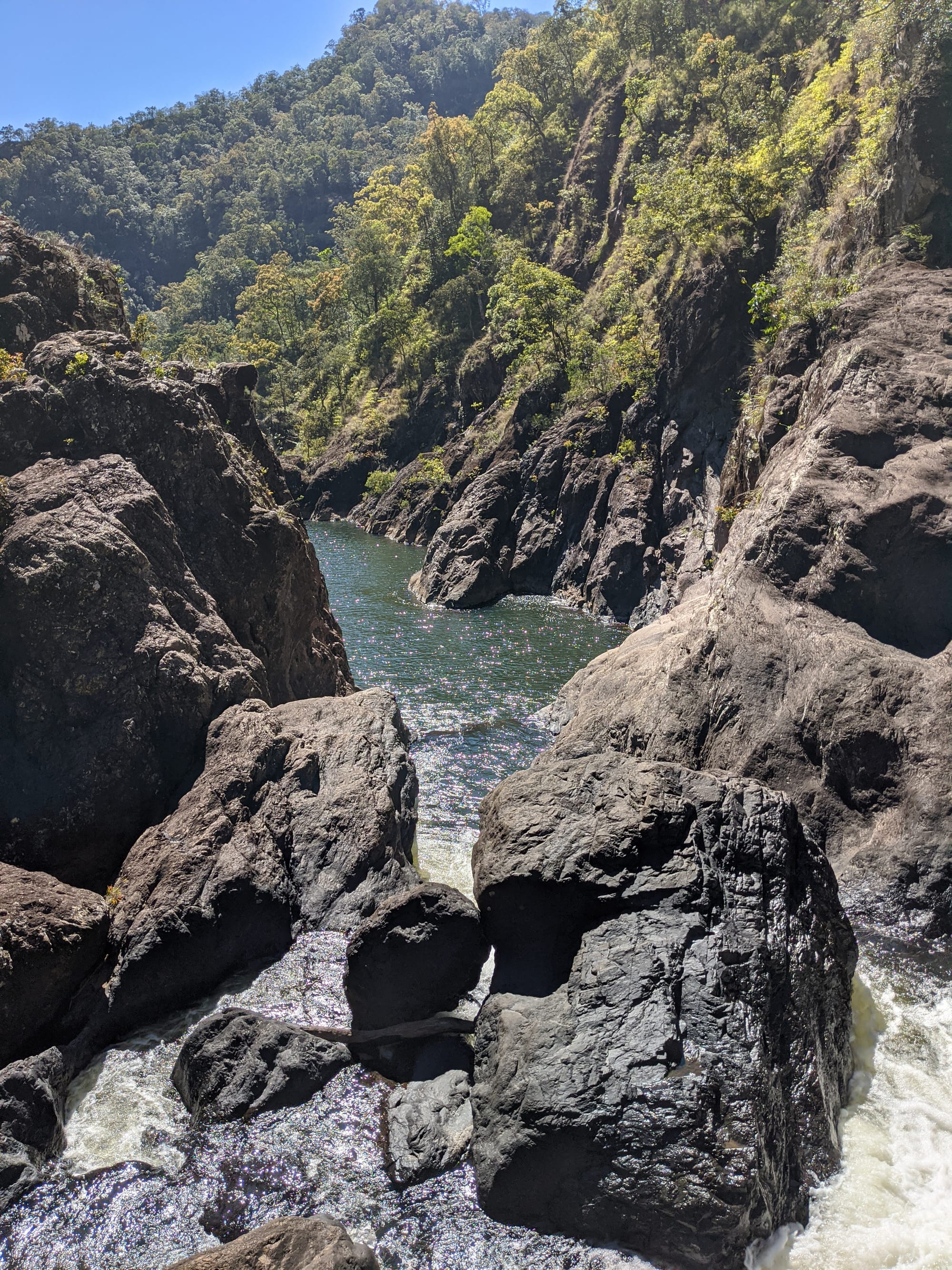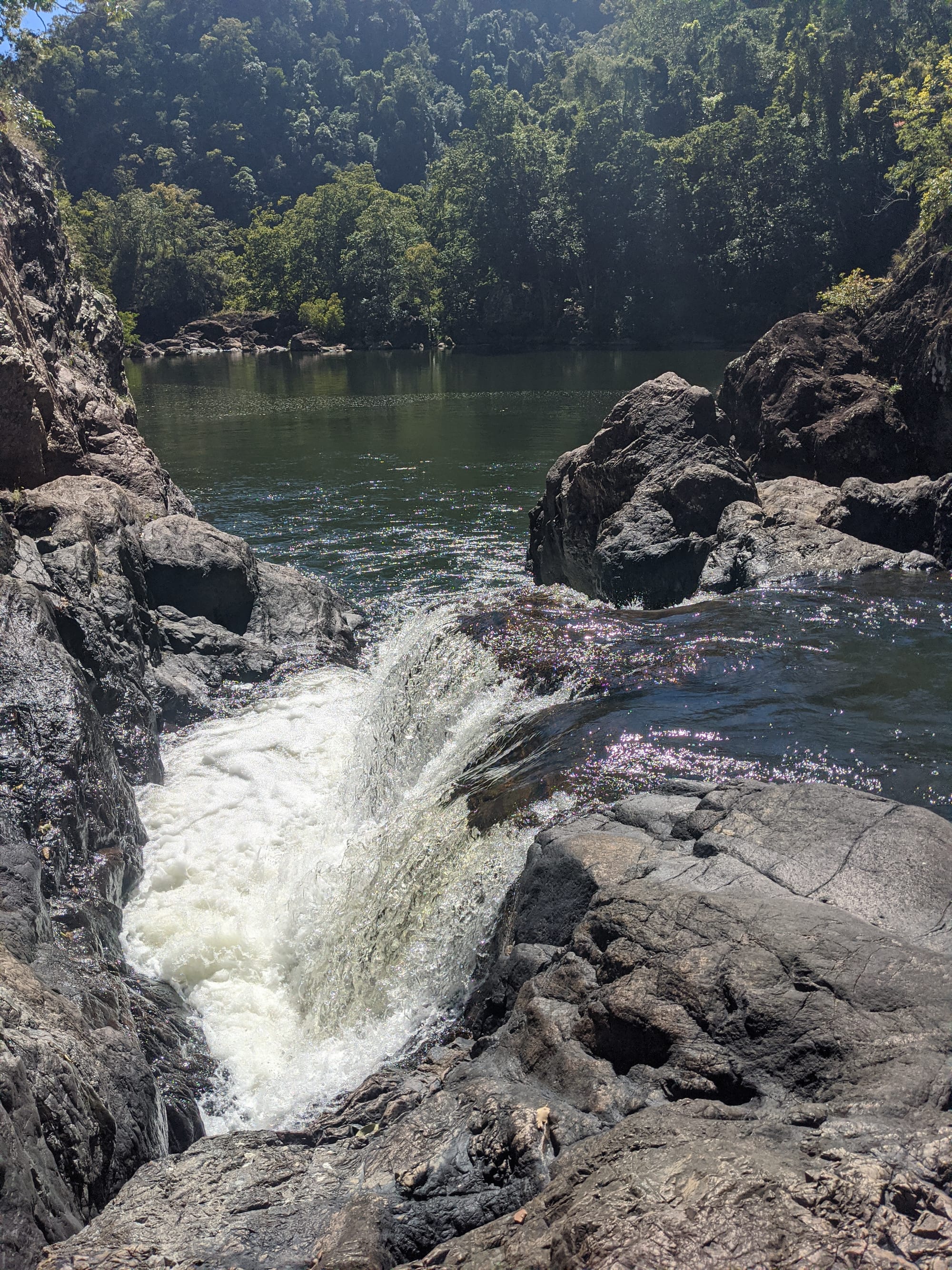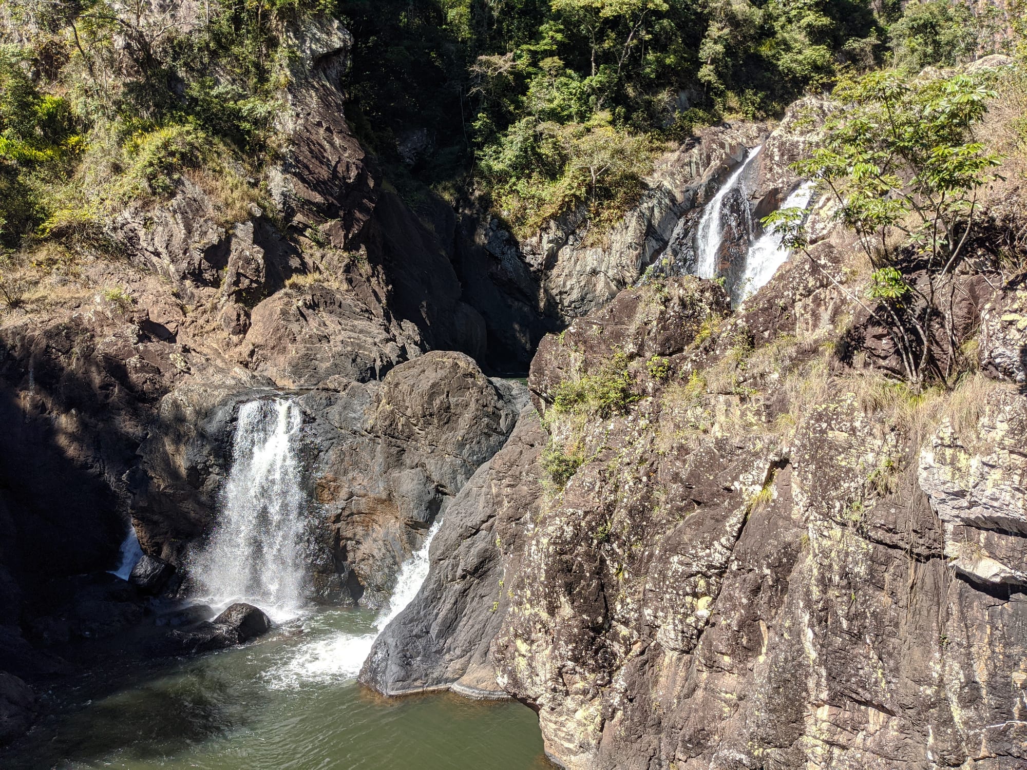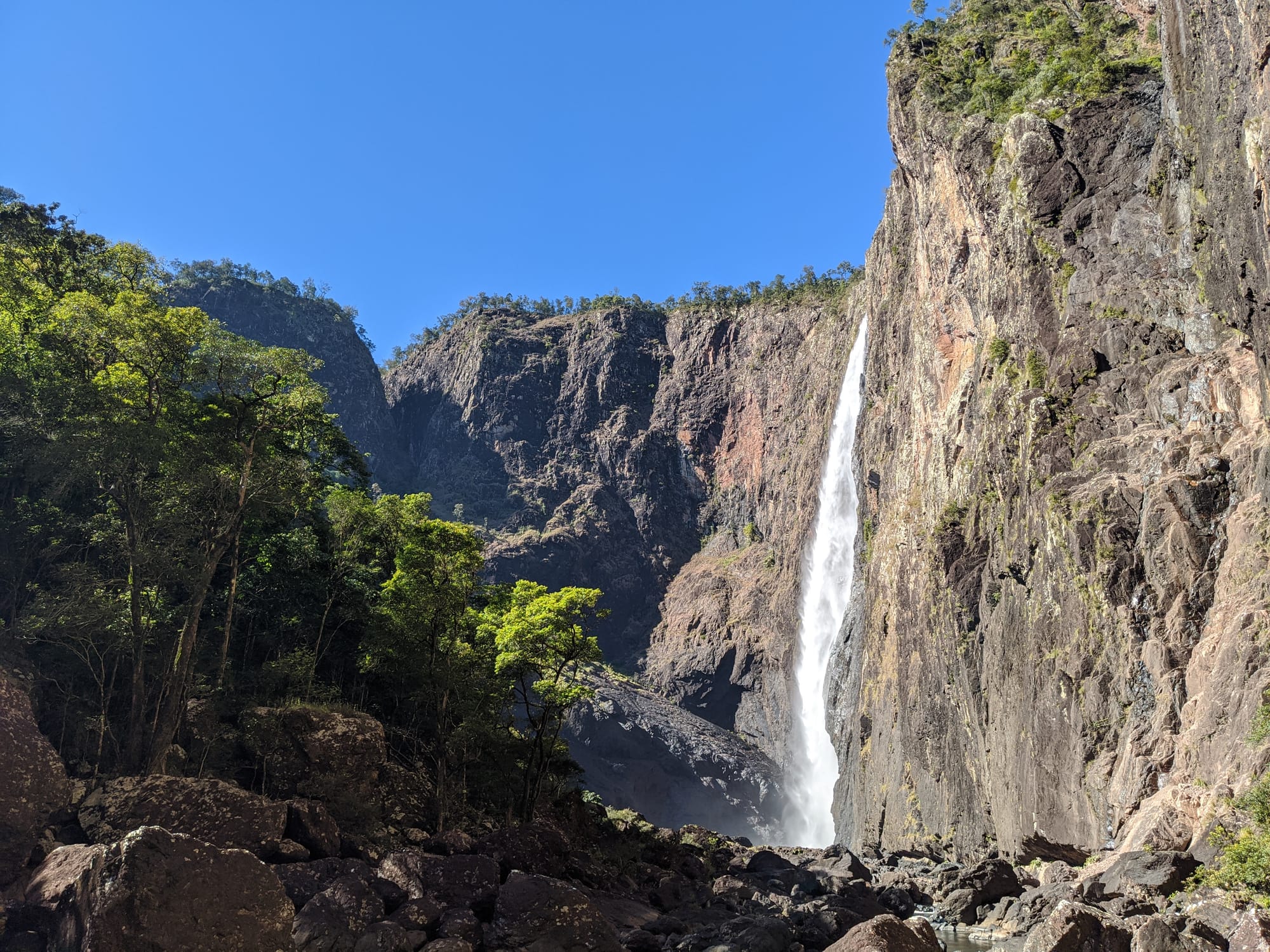 We started at Wallaman Falls and took the main track down to the base of the falls, where the sheer scale of the cliff and the spray from the plunge pool made for a spectacular beginning. After enjoying the view at the base, we had a look at the start of the old 1989 route that heads up the usually dry side of the waterfall - out of curiosity rather than commitment. From there, we turned our attention downstream and began exploring Stoney Creek.