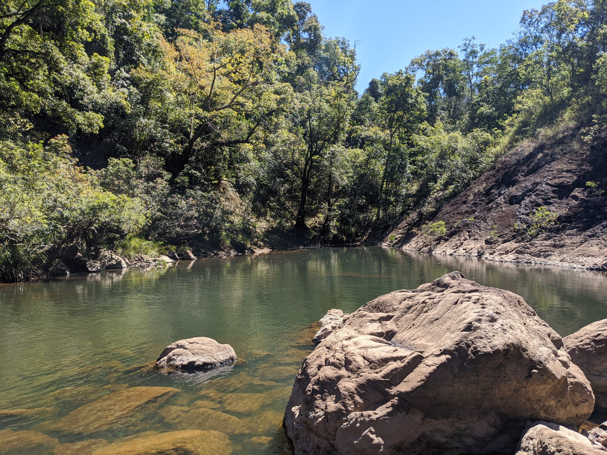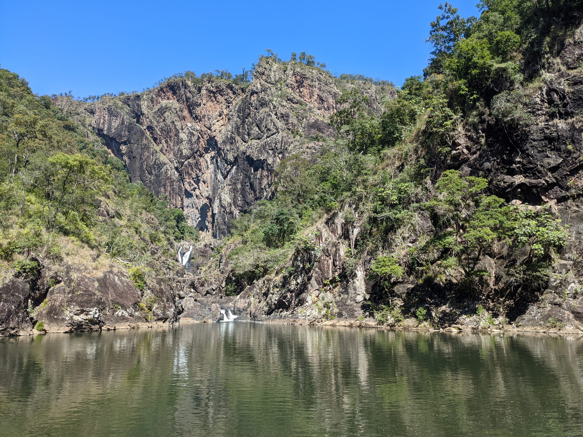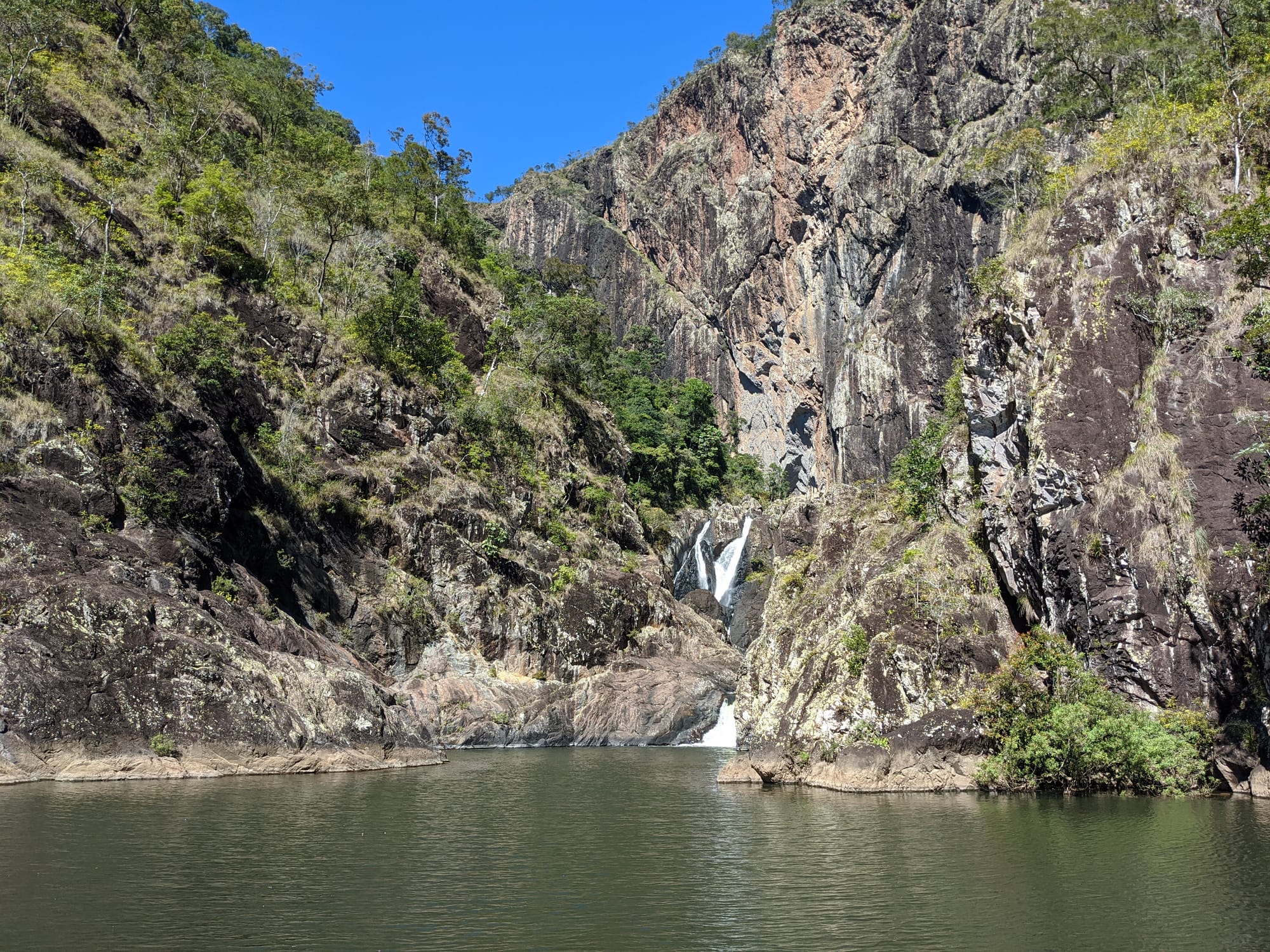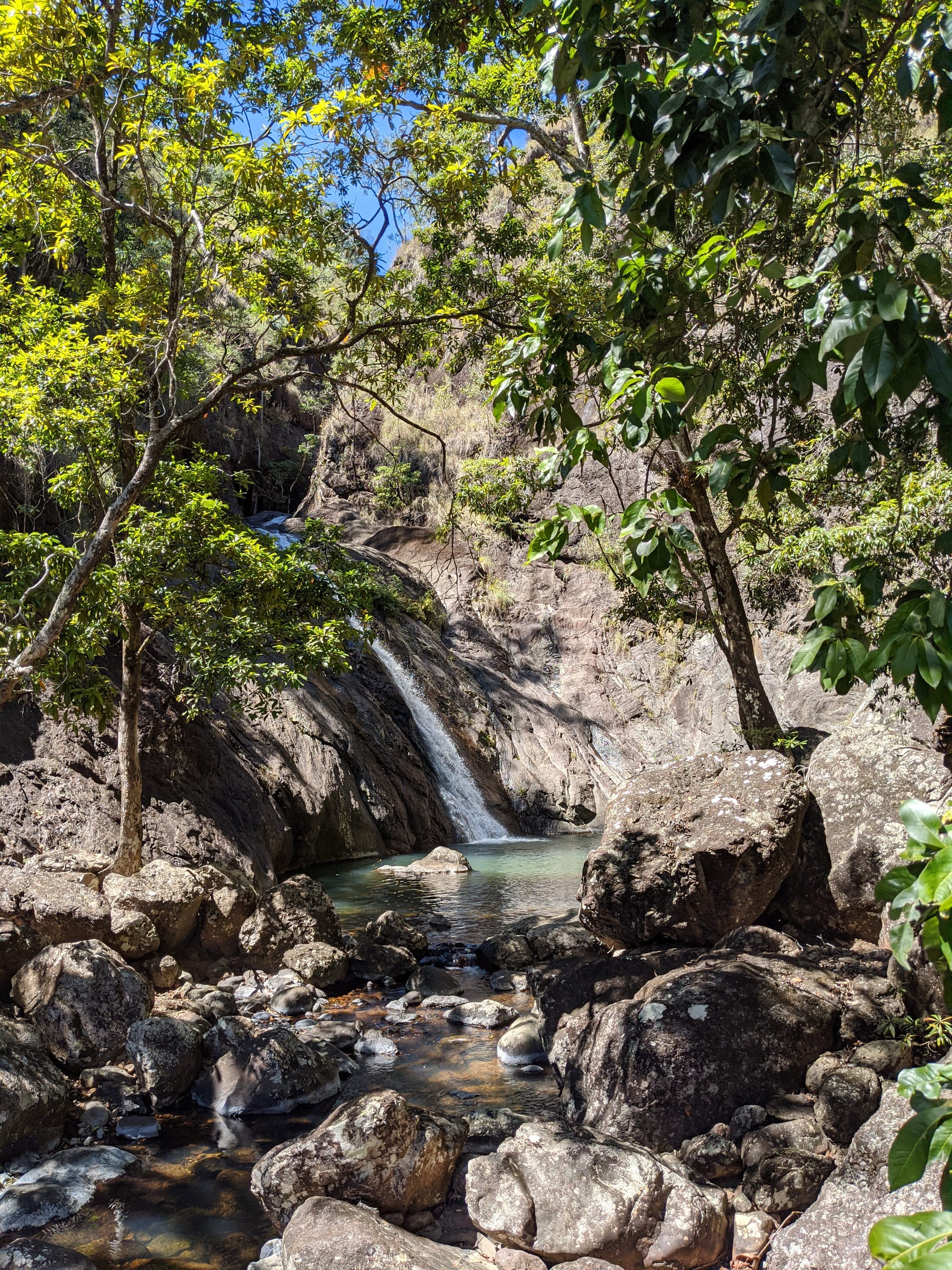We started at Wallaman Falls and took the main track down to the base of the falls, where the sheer scale of the cliff and the spray from the plunge pool made for a spectacular beginning. After enjoying the view at the base, we had a look at the start of the old 1989 route that heads up the usually dry side of the waterfall - out of curiosity rather than commitment. From there, we turned our attention downstream and began exploring Stoney Creek.