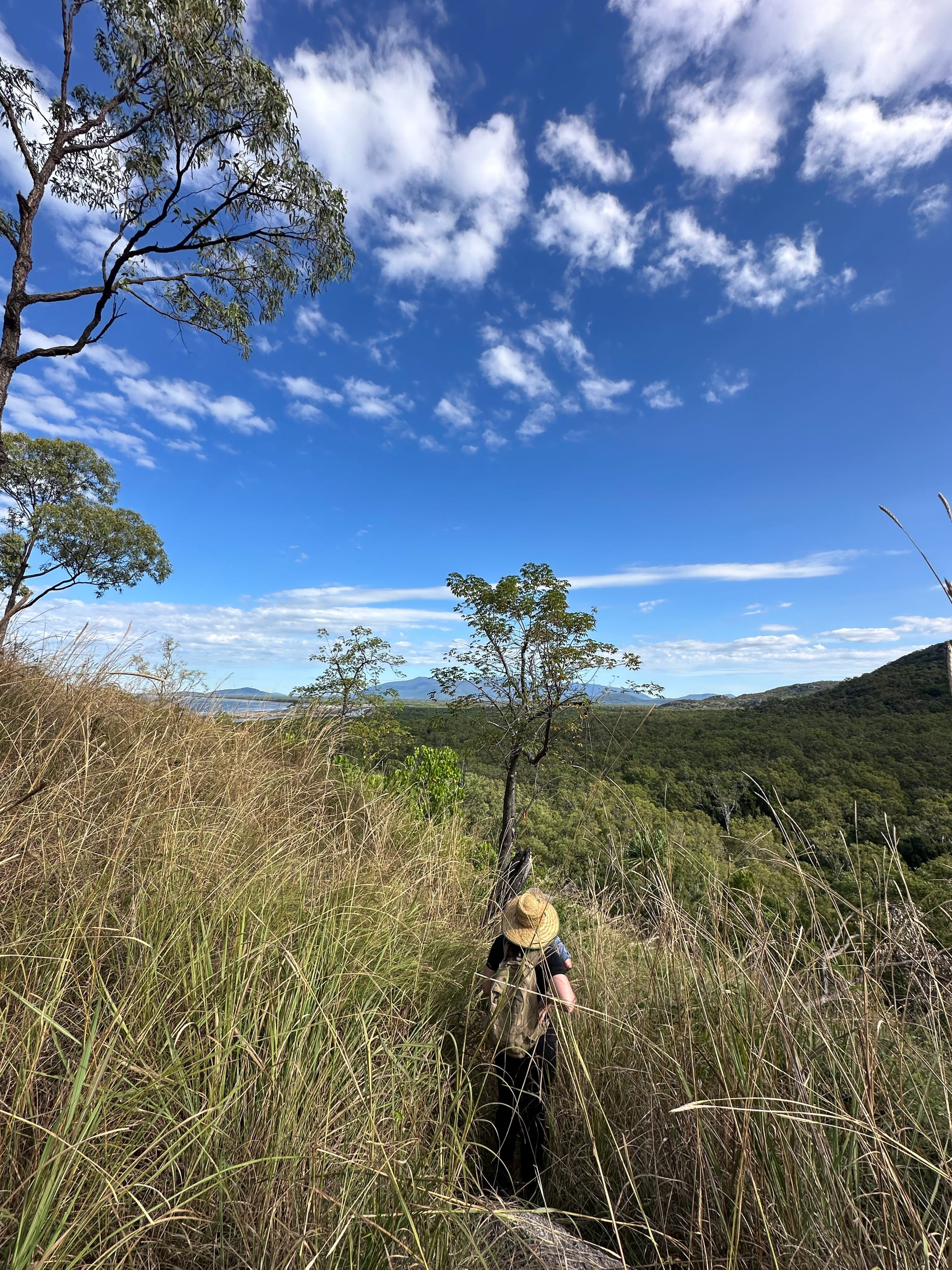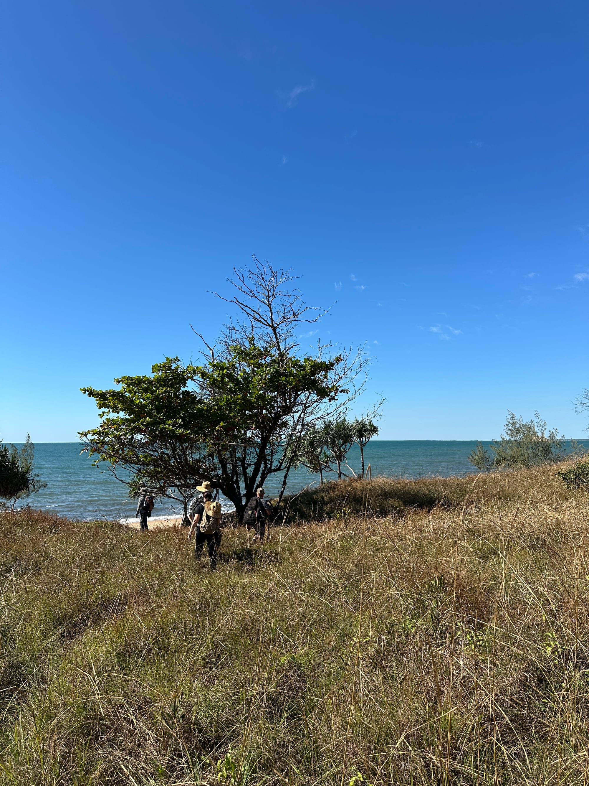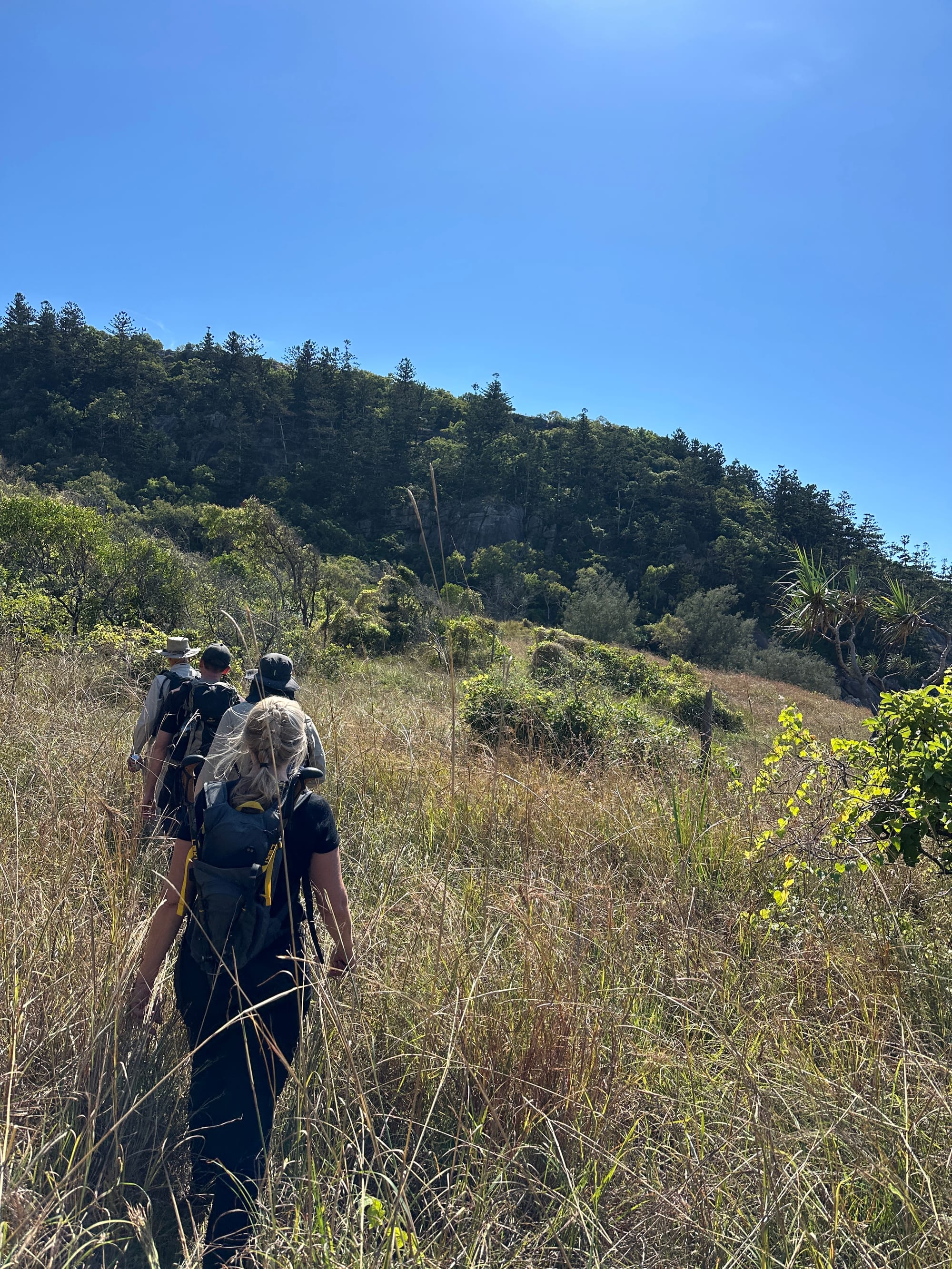 Wilfred led this enjoyable day walk out towards Sunset Beach on Cape Cleveland, with the original plan being to continue through to Paradise Beach. The route follows a rough and sometimes faint track through isolated country, with a few scrubby sections and some steep, uneven ground along the way. It is a part of Bowling Green Bay National Park that does not see a lot of visitors, which adds to the sense of remoteness and adventure.