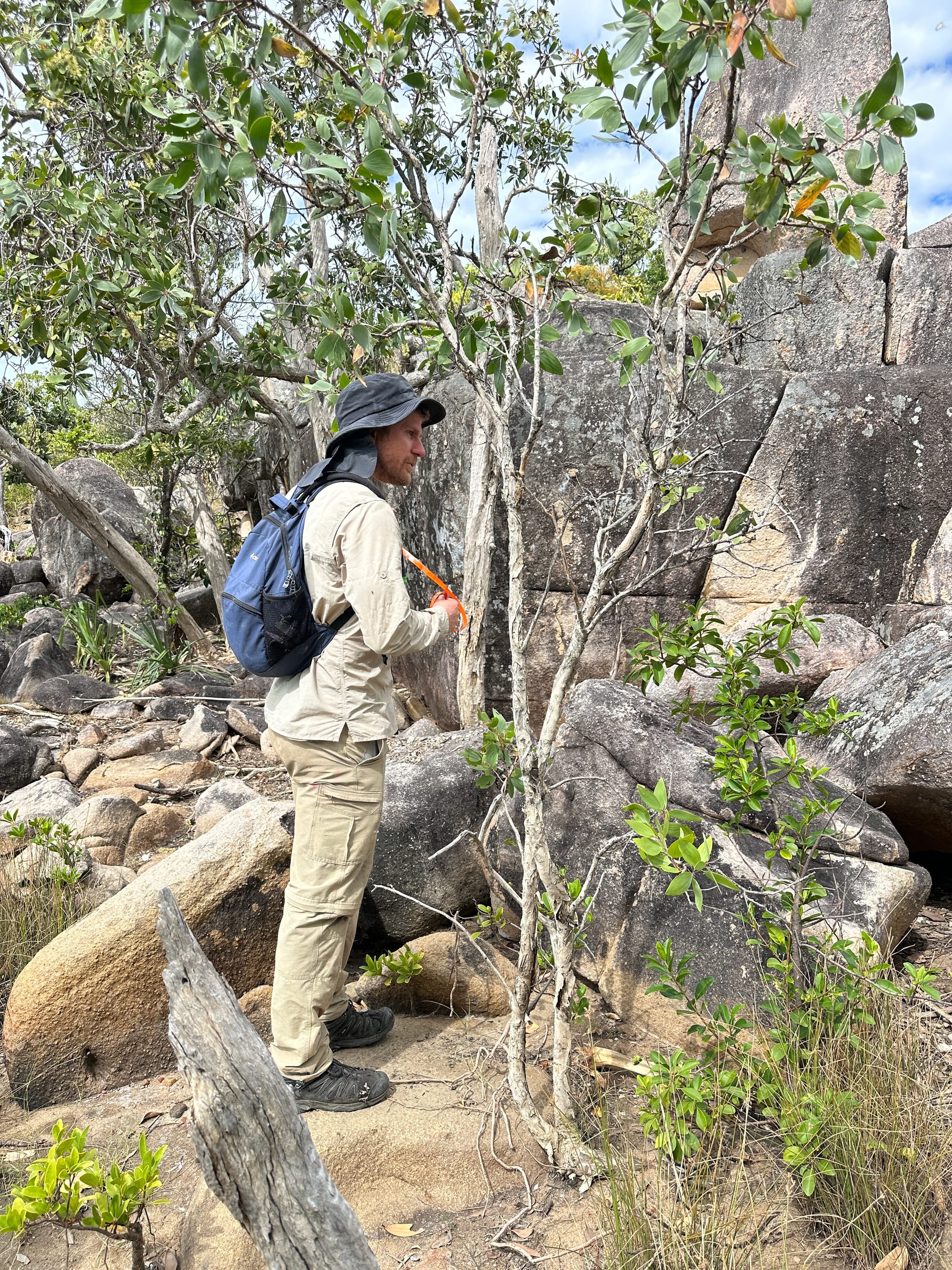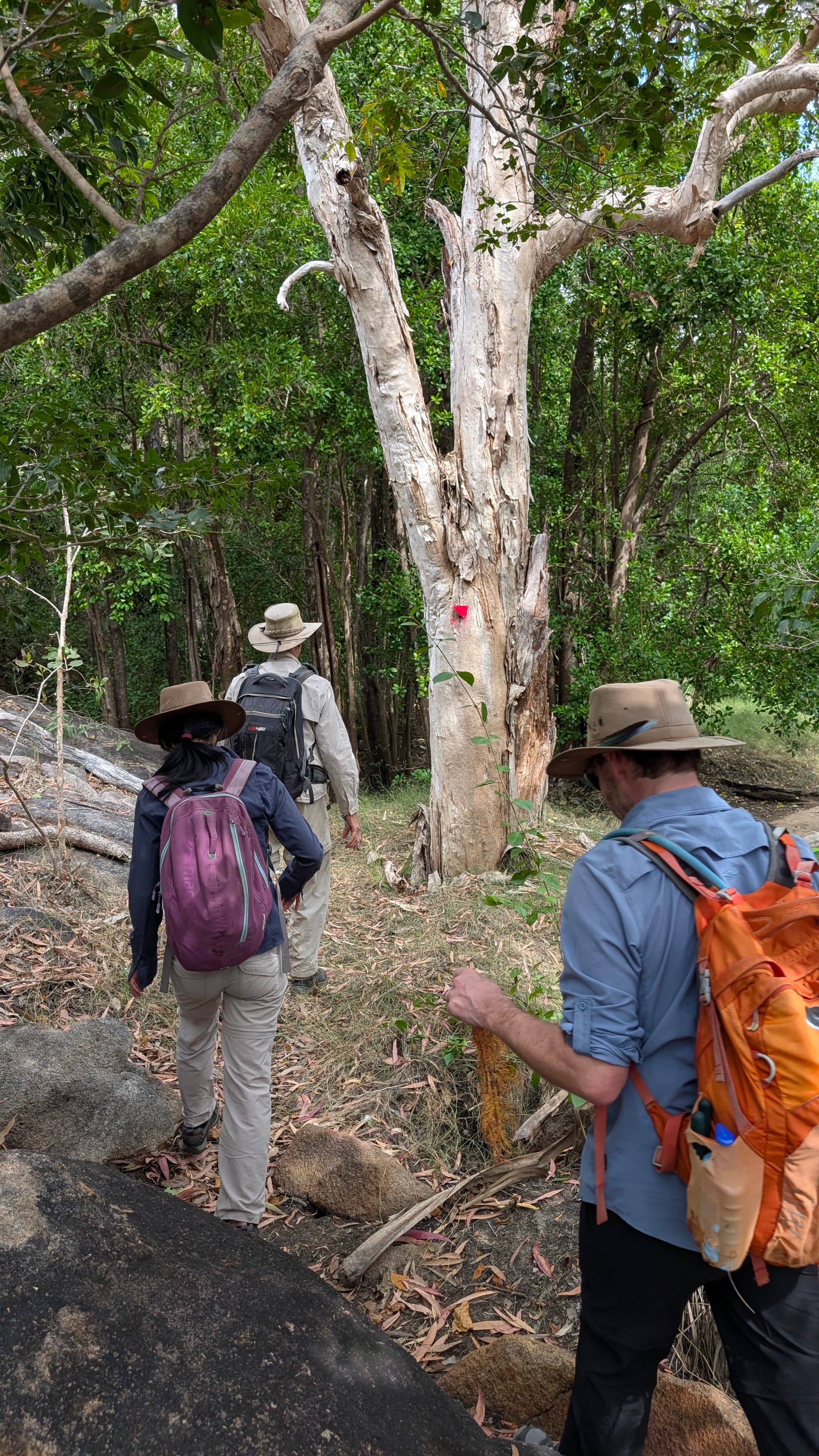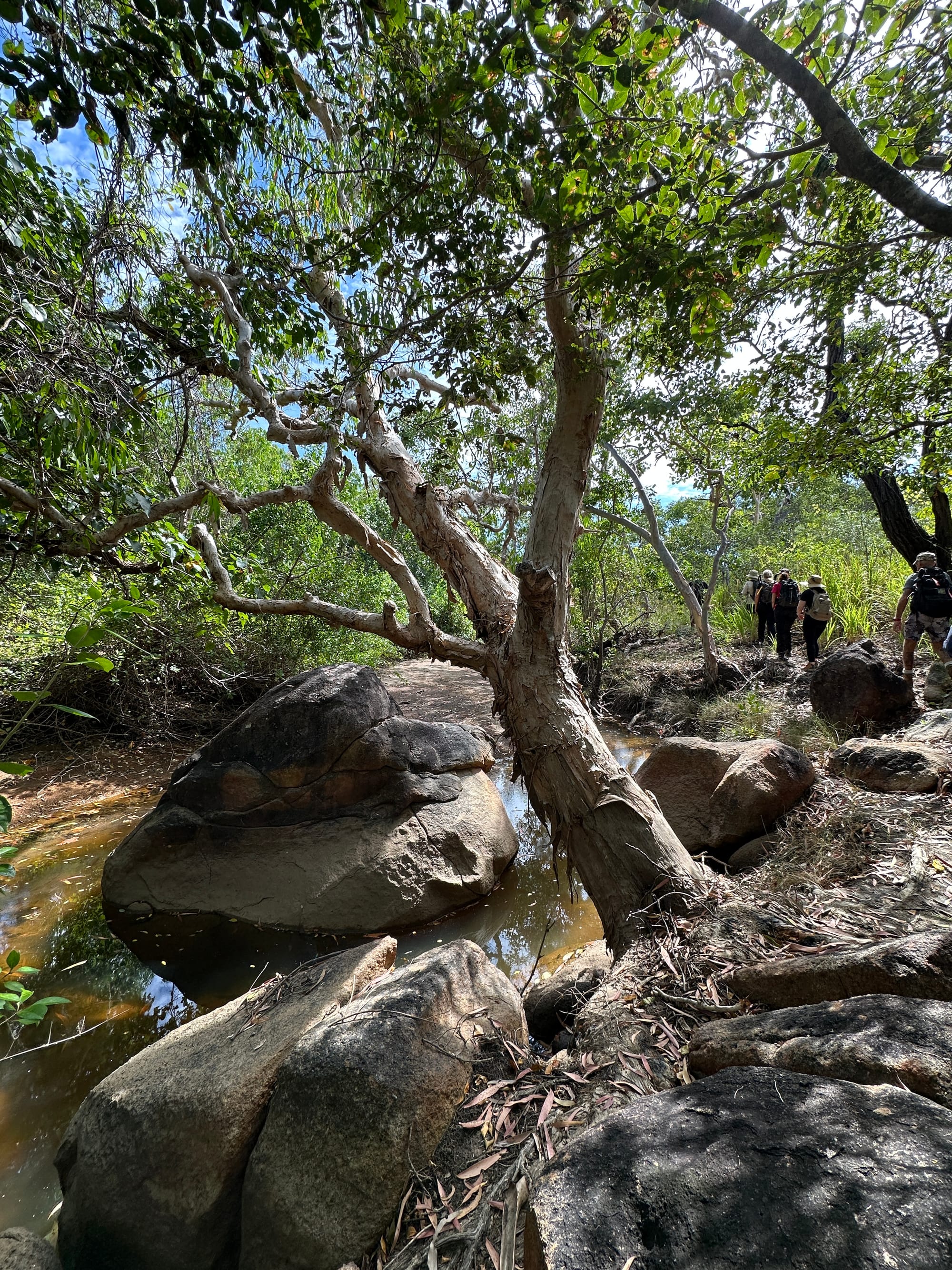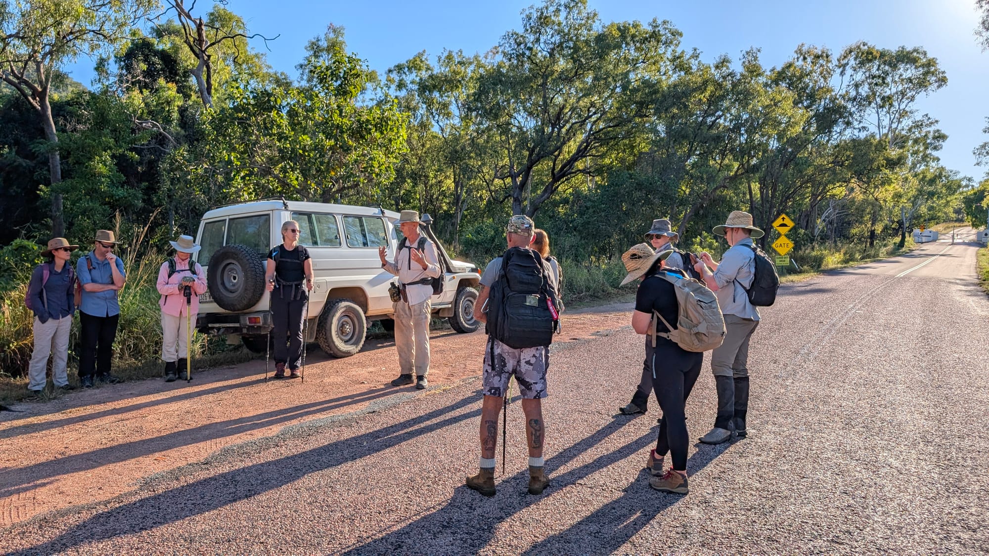 Wilfred led this enjoyable day walk out towards Sunset Beach on Cape Cleveland, with the original plan being to continue through to Paradise Beach. The route follows a rough and sometimes faint track through isolated country, with a few scrubby sections and some steep, uneven ground along the way. It is a part of Bowling Green Bay National Park that does not see a lot of visitors, which adds to the sense of remoteness and adventure.