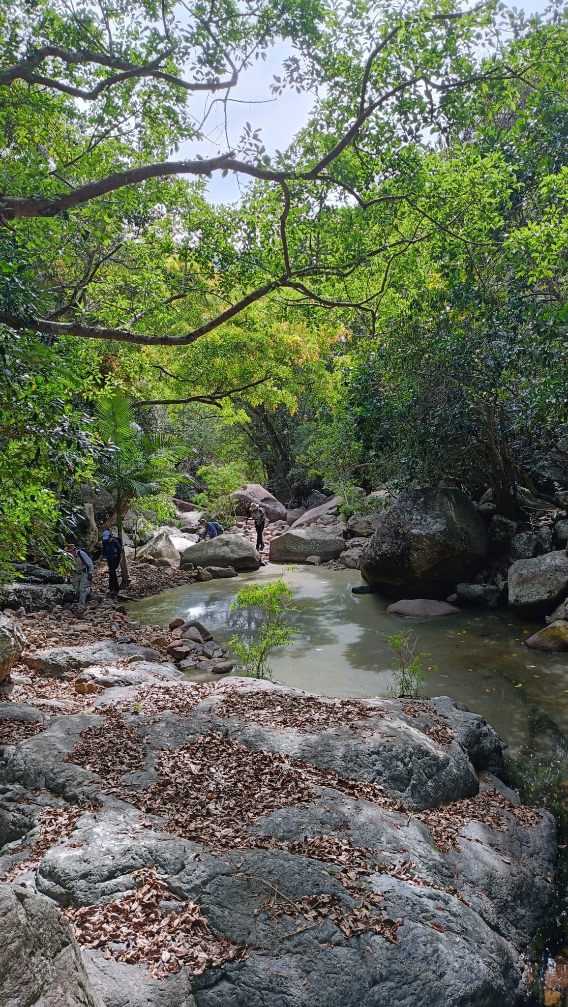 - Rock-hopping and scrambling: Progress involved steady rock-hopping, occasional scrambles, and pushing through rare pockets of trees and scrub.