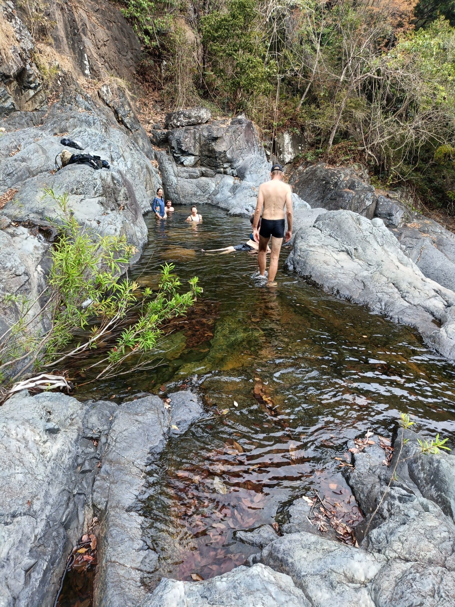 - Waterfalls & swimming: The main waterfall was flowing lightly, but enough to tumble over the ledges. At the top, we found a superb swimming hole with panoramic views down the valley, giving us an “infinity pool” feeling, making it the perfect spot for cooling off and having some lunch.