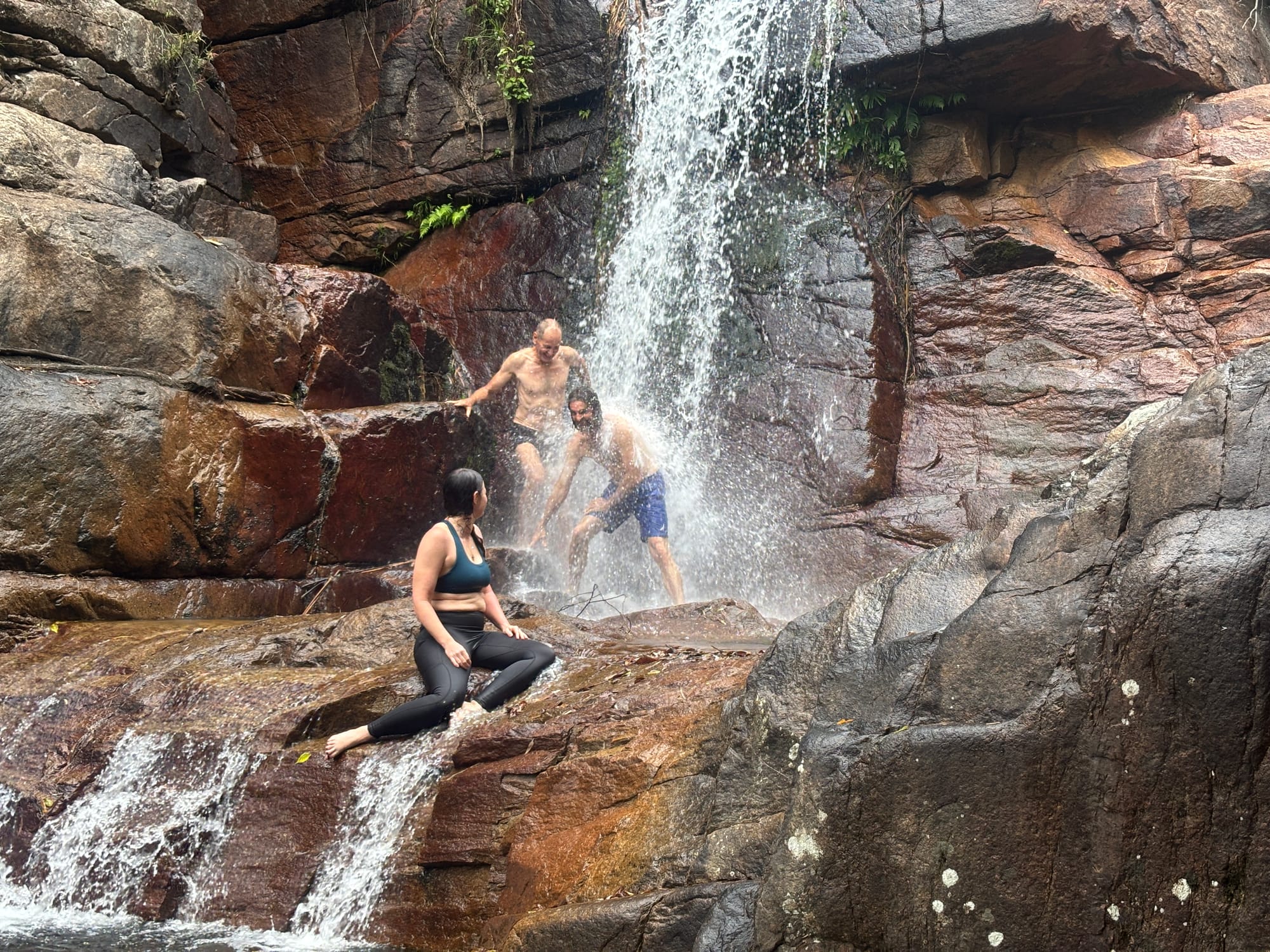 From there, we made our way to Sandy Beach & Princess Pools, where we enjoyed a refreshing swim, well-earned after the morning's heat. Not long after, the rain rolled in, making the rocks and track quite slippery. At this point, some of the group decided to head back to the cars for safety.