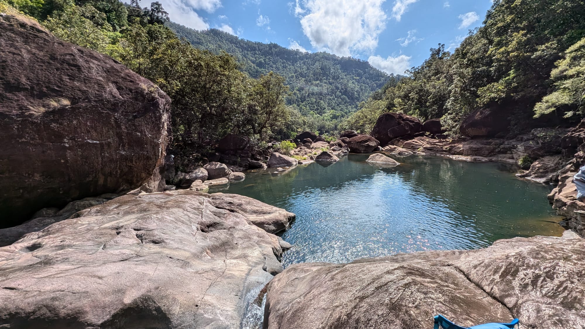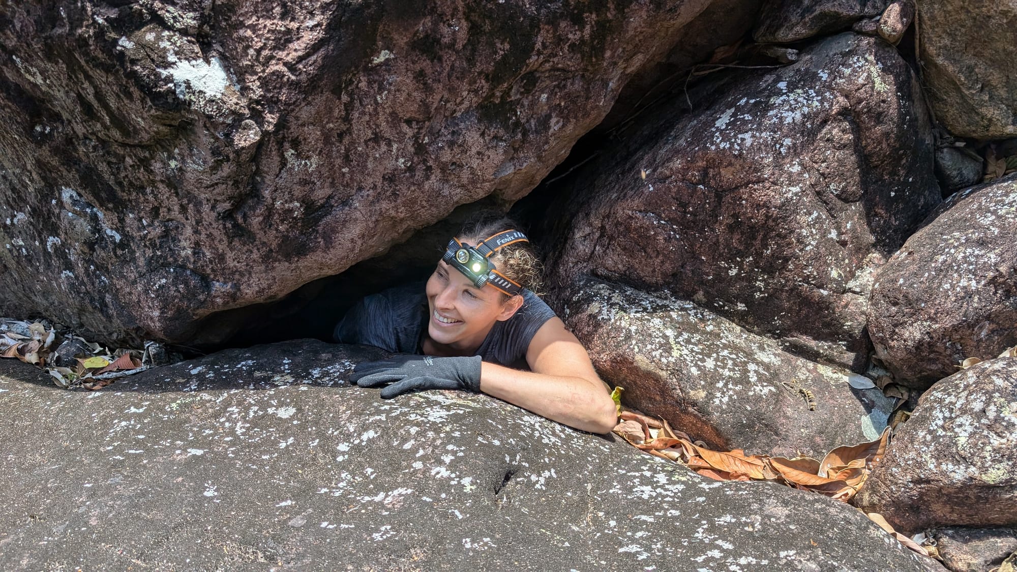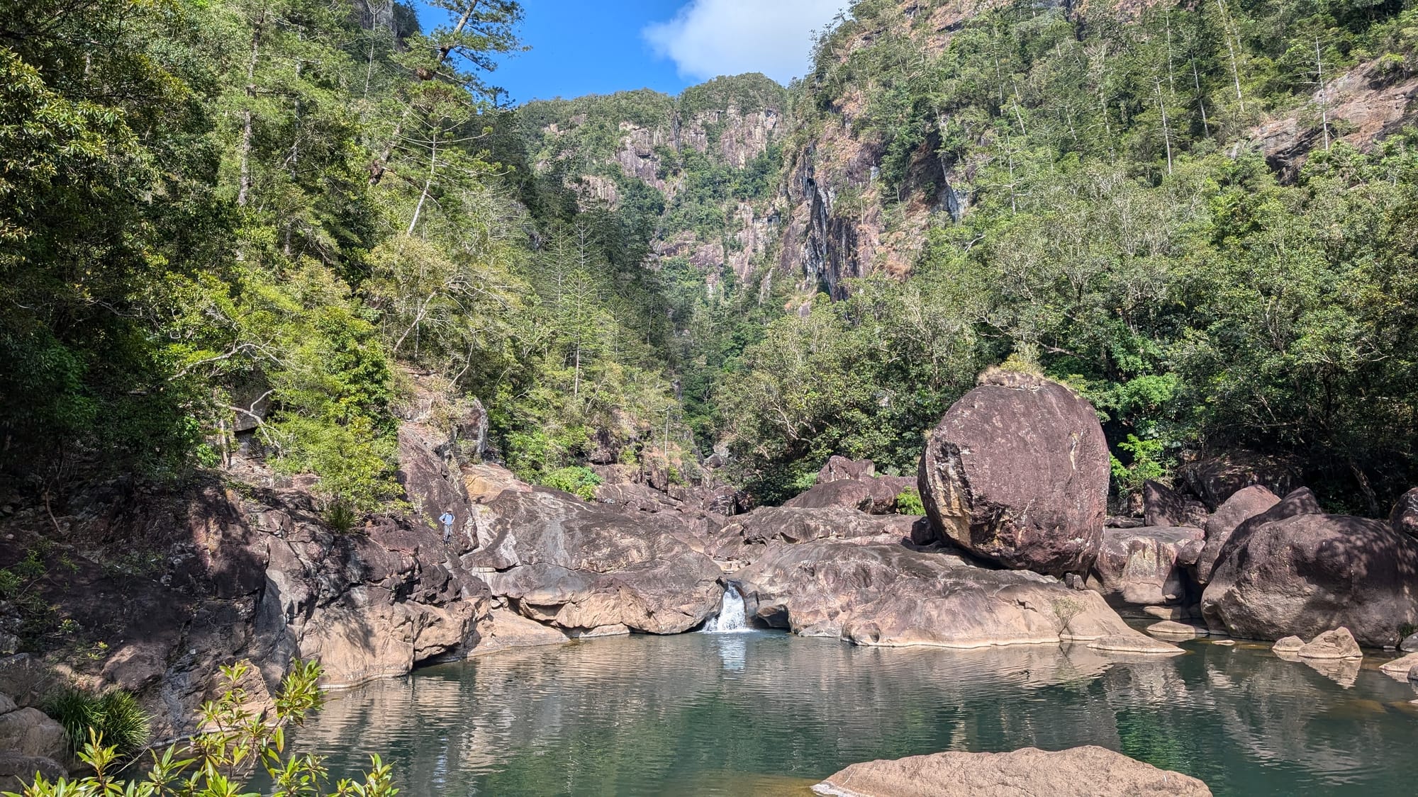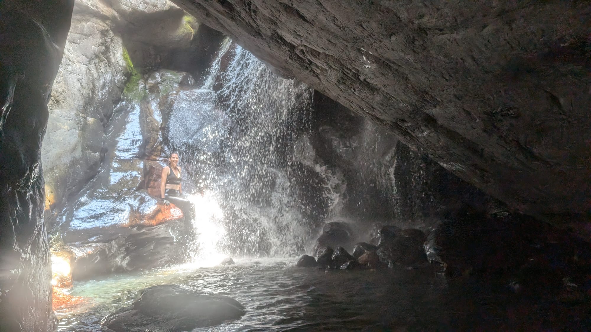 Eventually, we accepted that the loop was not on the cards and shifted gears from "mission mode" to simply enjoying the place for what it was. That turned out to be the right call. We stopped for lunch, explored caves, ducked through tight squeezes between the boulders, and found underground waterfalls hidden inside the maze. There was plenty of swimming, plenty of laughter, and plenty of appreciation for just how unique this gorge is. One of the standout moments was a narrow squeeze through an underground boulder passage with a small waterfall splashing down onto your head as you wriggled through - the sort of feature that makes this place feel more like an adventure playground than a hike. The area is well known for exactly this sort of rugged, cave-like boulder travel, with deep pools, caverns, and hidden scrambles tucked throughout the gorge.