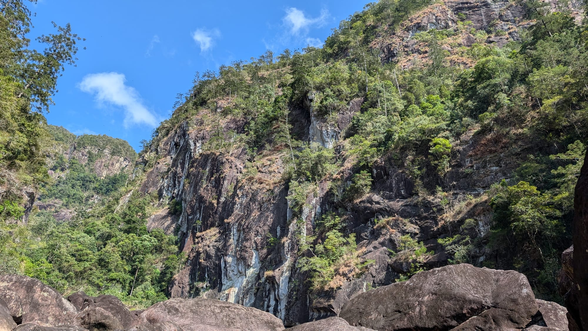 This Tully Gorge trip was a tough exploratory bushwalk through giant house-sized boulders, caves, swims, and underground waterfalls. Although the full loop was abandoned, the day delivered scrambling, adventure, and a memorable taste of this wild gorge.