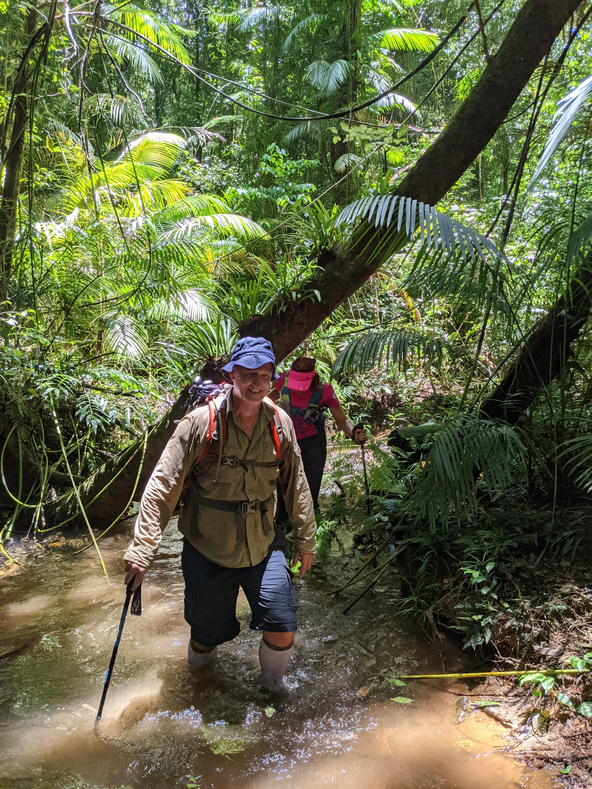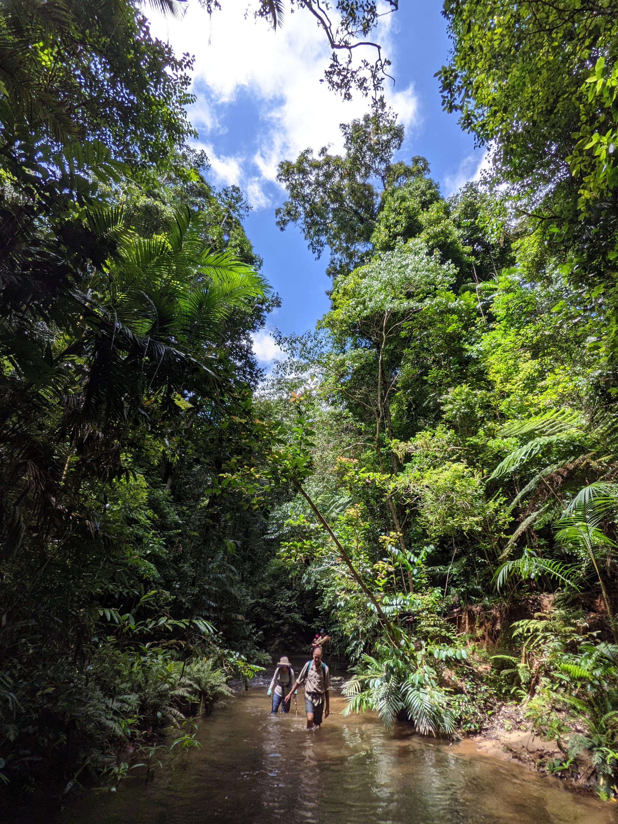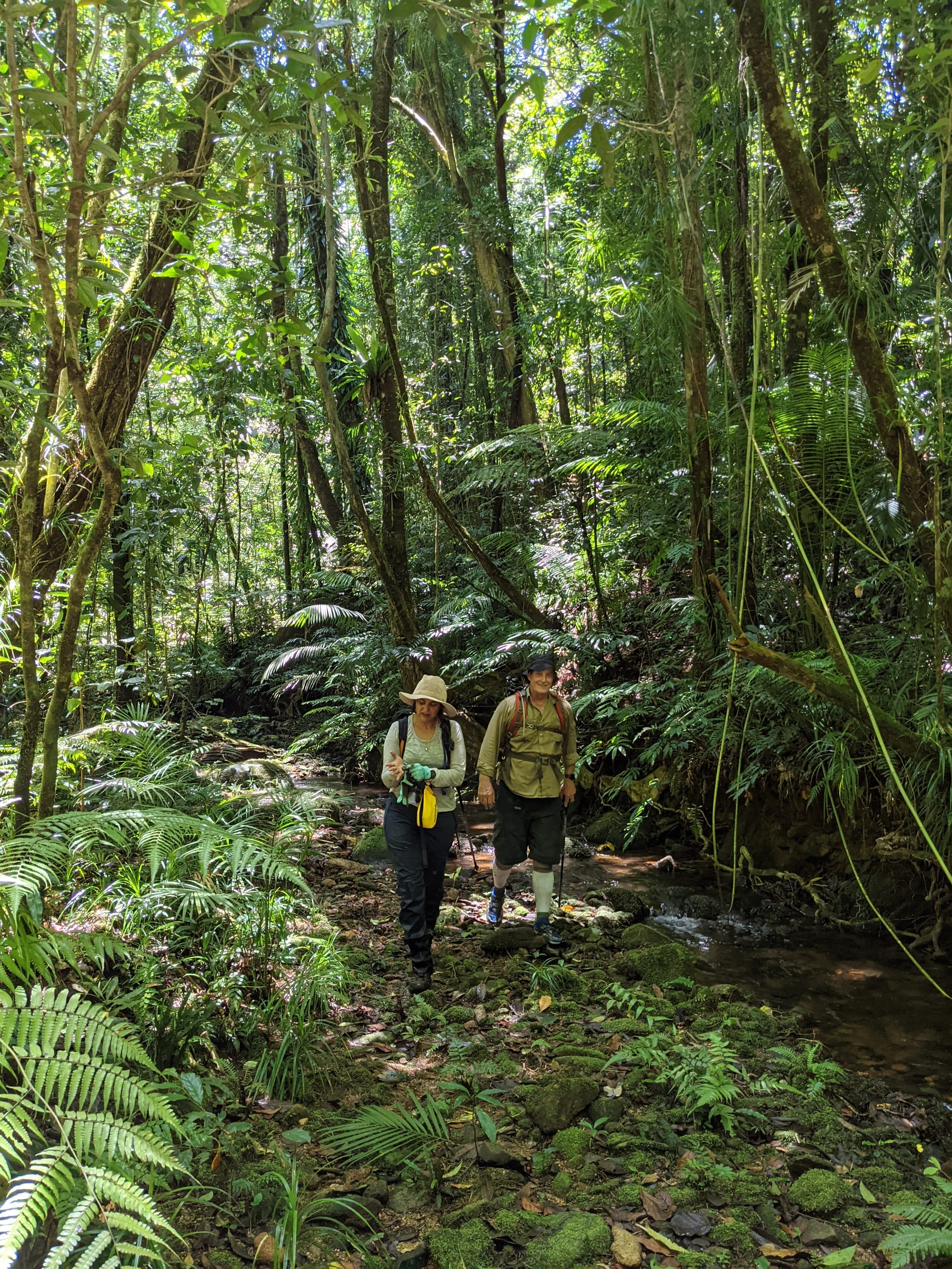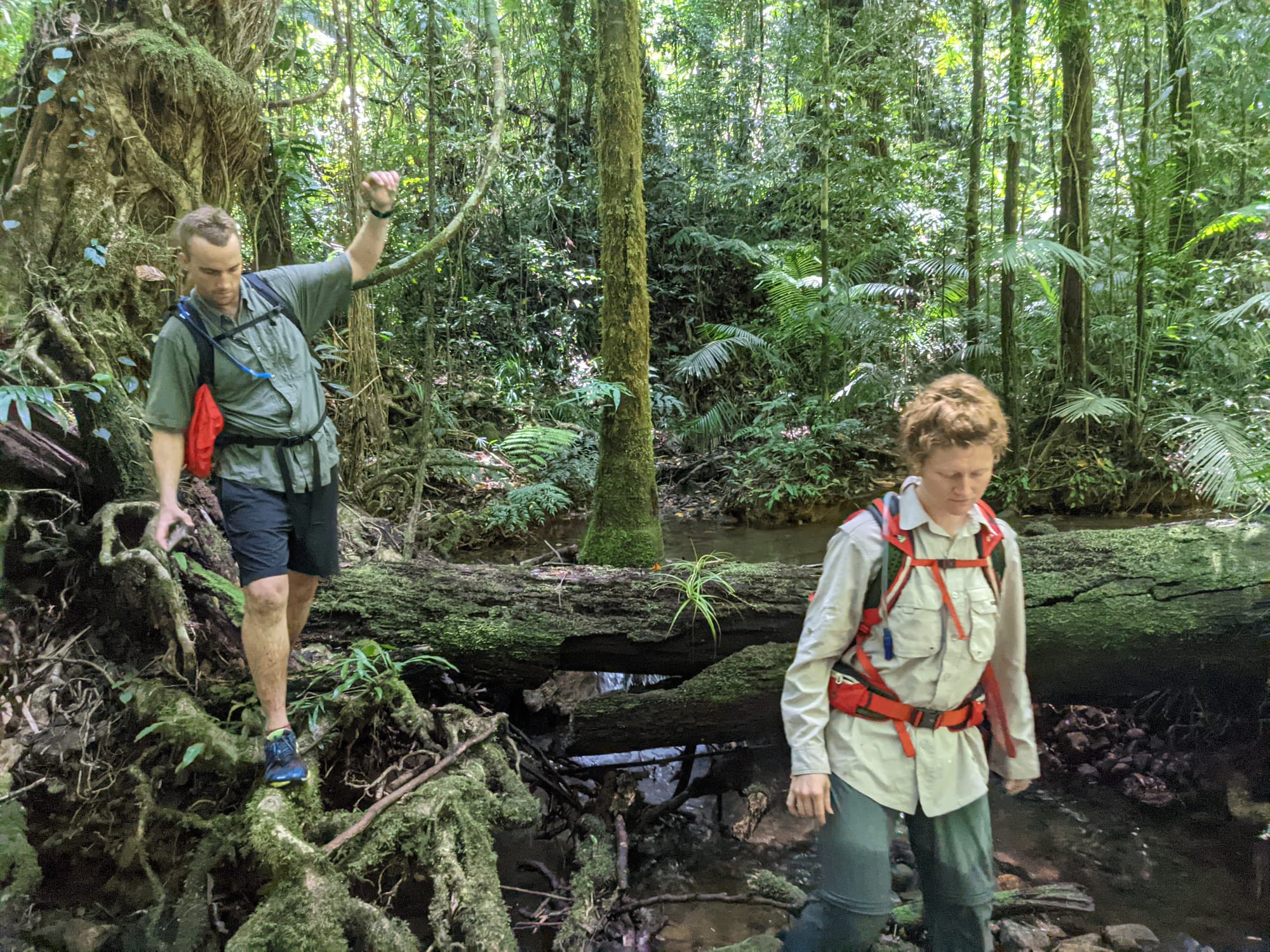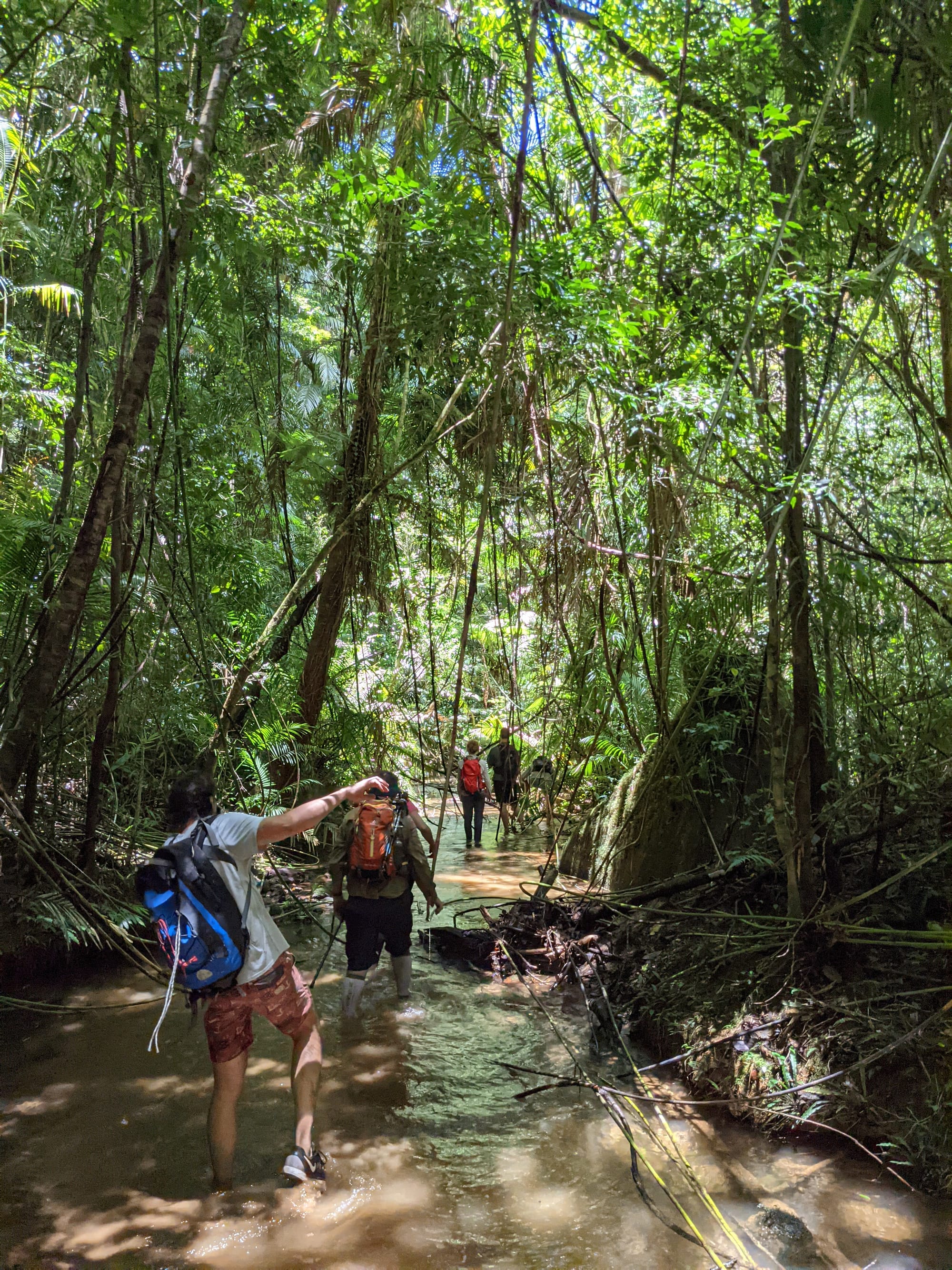 The creek winds its way gently at first. Ferns line the banks. Tree roots clutch at the soil like grasping hands. It feels enclosed and lush, textbook tropical rainforest.