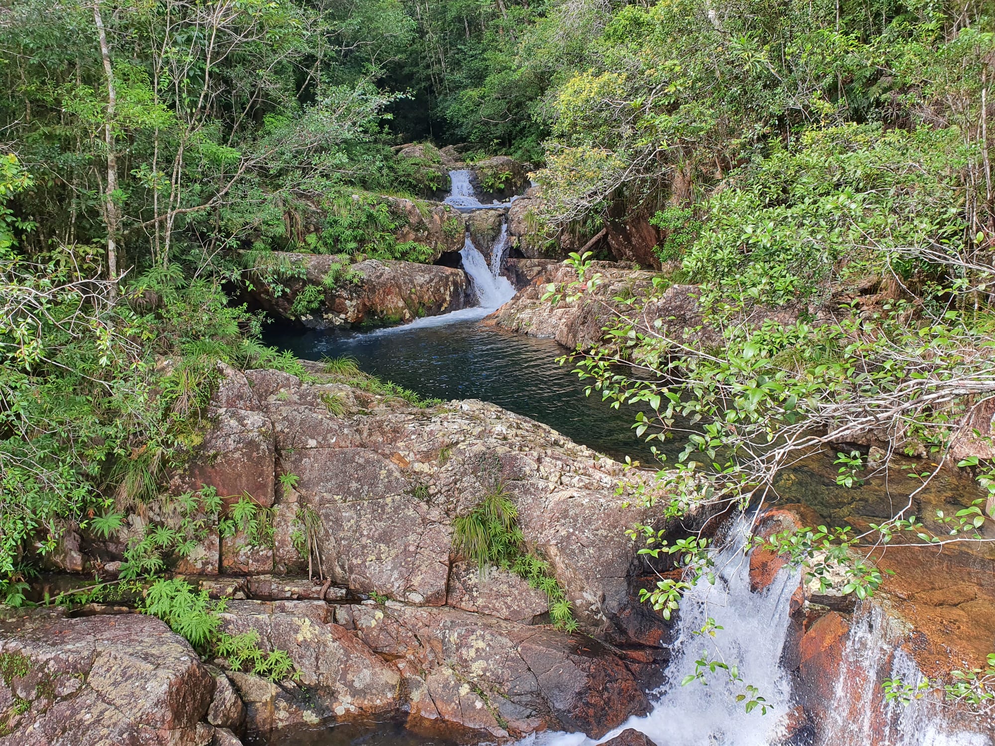 Eventually, the creek announces its drama. Gold Creek Falls appears with clean granite and falling water framed by rainforest. We stopped there to enjoy the views, regroup, snack, and simply take it in. It is one of Paluma's quiet highlights - remote enough to feel earned, scenic enough to justify every scratch and wet step.