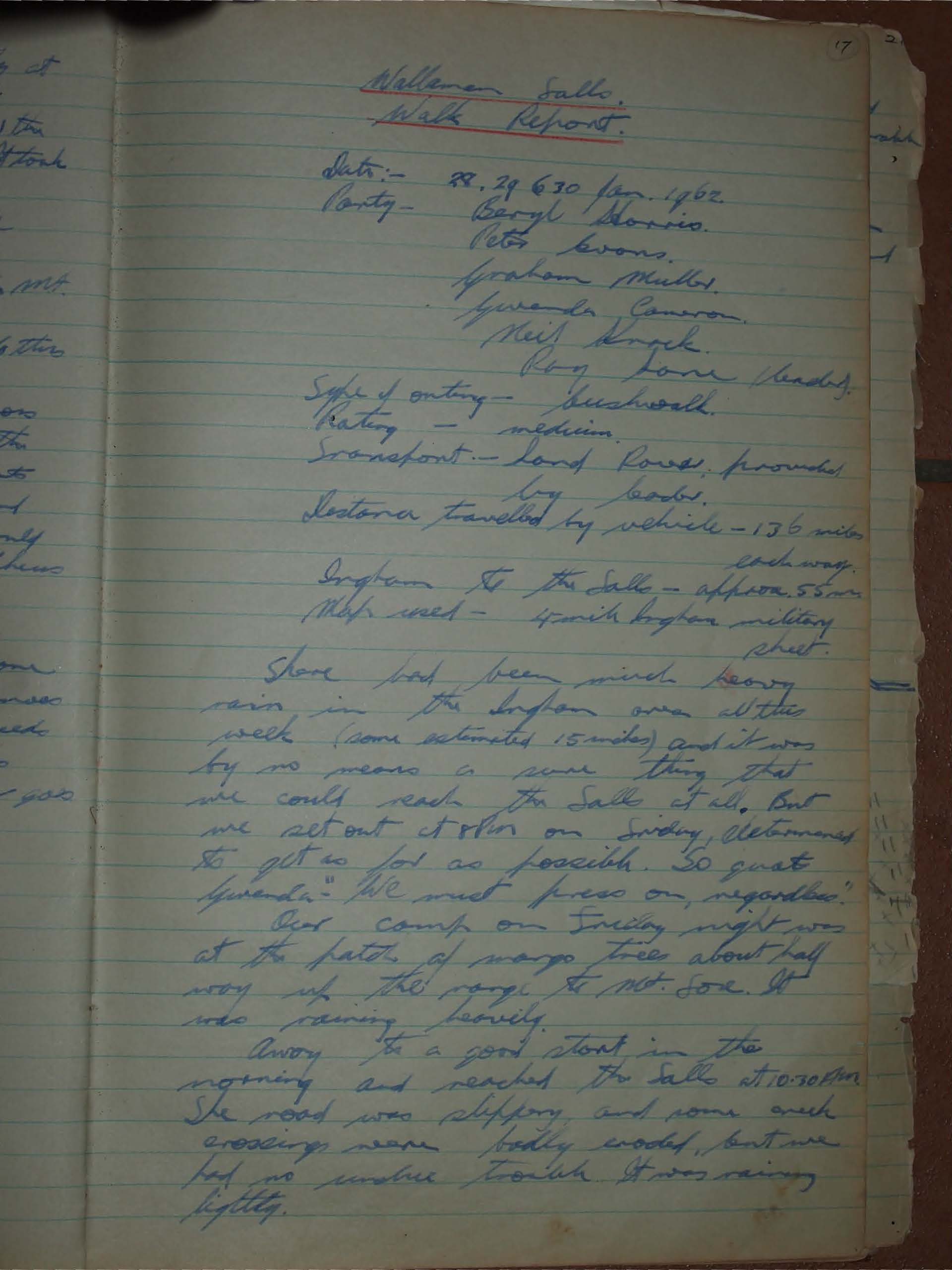 There had been much heavy rain in the Ingham area all the week (some estimated 15 inches) and it was by no means a sure thing that we could reach the Falls at all. But we set out at 8pm on Friday afternoon to get as far as possible. So quote Gwenda:- "We must press on, regardless". Our camp on Friday night was at the patch of wonga trees about half way up the range to Mt. Fox. It was raining heavily.