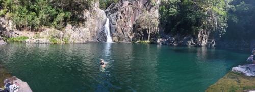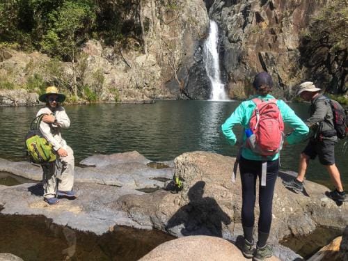 Ten walkers tackled Waterview Creek to the legendary Black Hole above Jourama Falls. The hike featured steep climbs, pandanus scrambles, giant figs, snakes, waterfalls, and a freezing swim in the deep pool.
