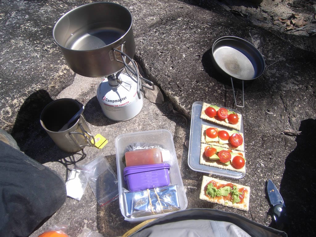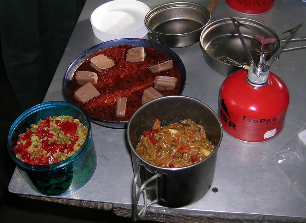 - Supper - Dehydrated or freeze-dried food- "Back Country" or "Backpackers Pantry" are two widely available freeze-dried foods. Couscous, polenta, or freeze-dried rice cooked with a stock cube and freeze-dried vegetables is another alternative. Or you can dehydrate your own food.