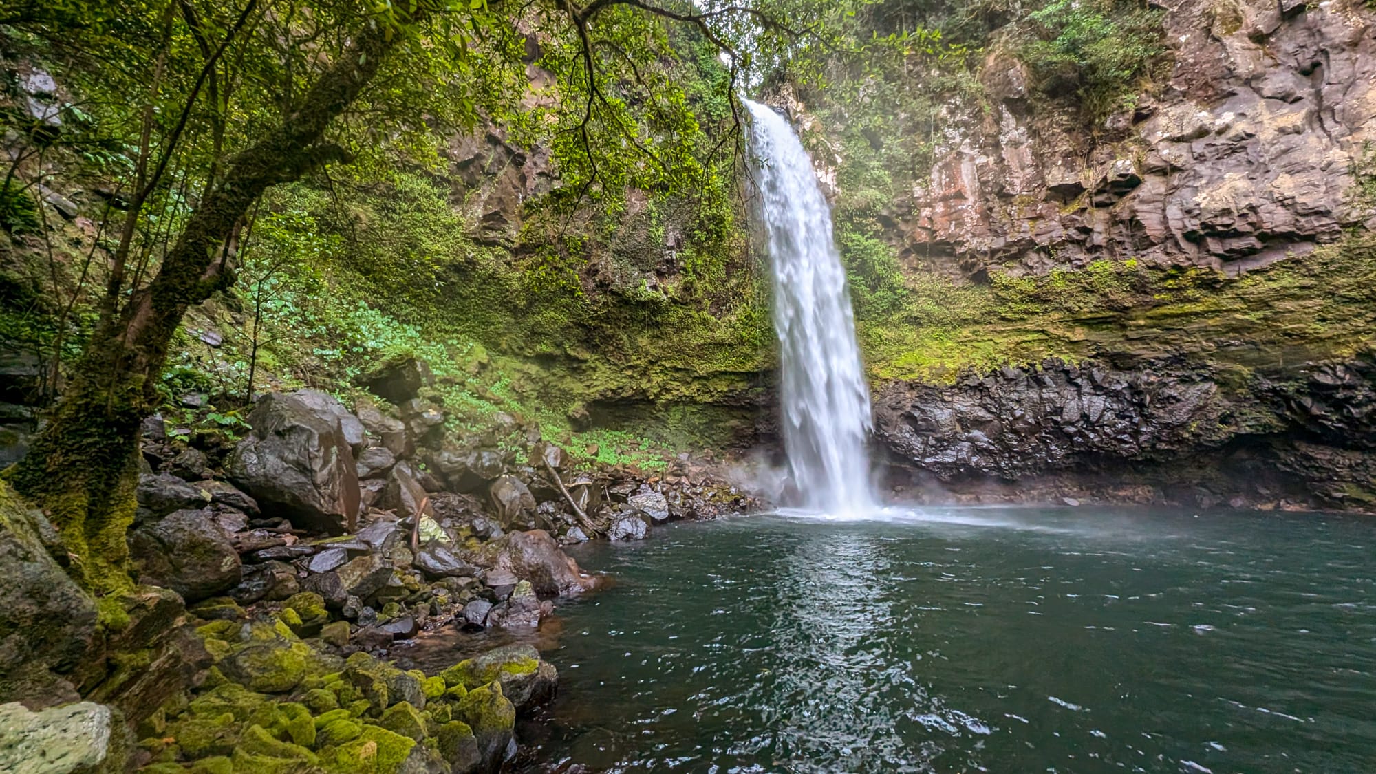 Our hike will lead us through the emerald-green forest to Blackhole Falls. A Grade 5 difficulty trail awaits us, requiring a keen sense of direction and a taste for off-the-beaten-track exploration. This picturesque setting boasts a breathtaking waterfall and pool, framed by a gorge adorned with vibrant greenery.