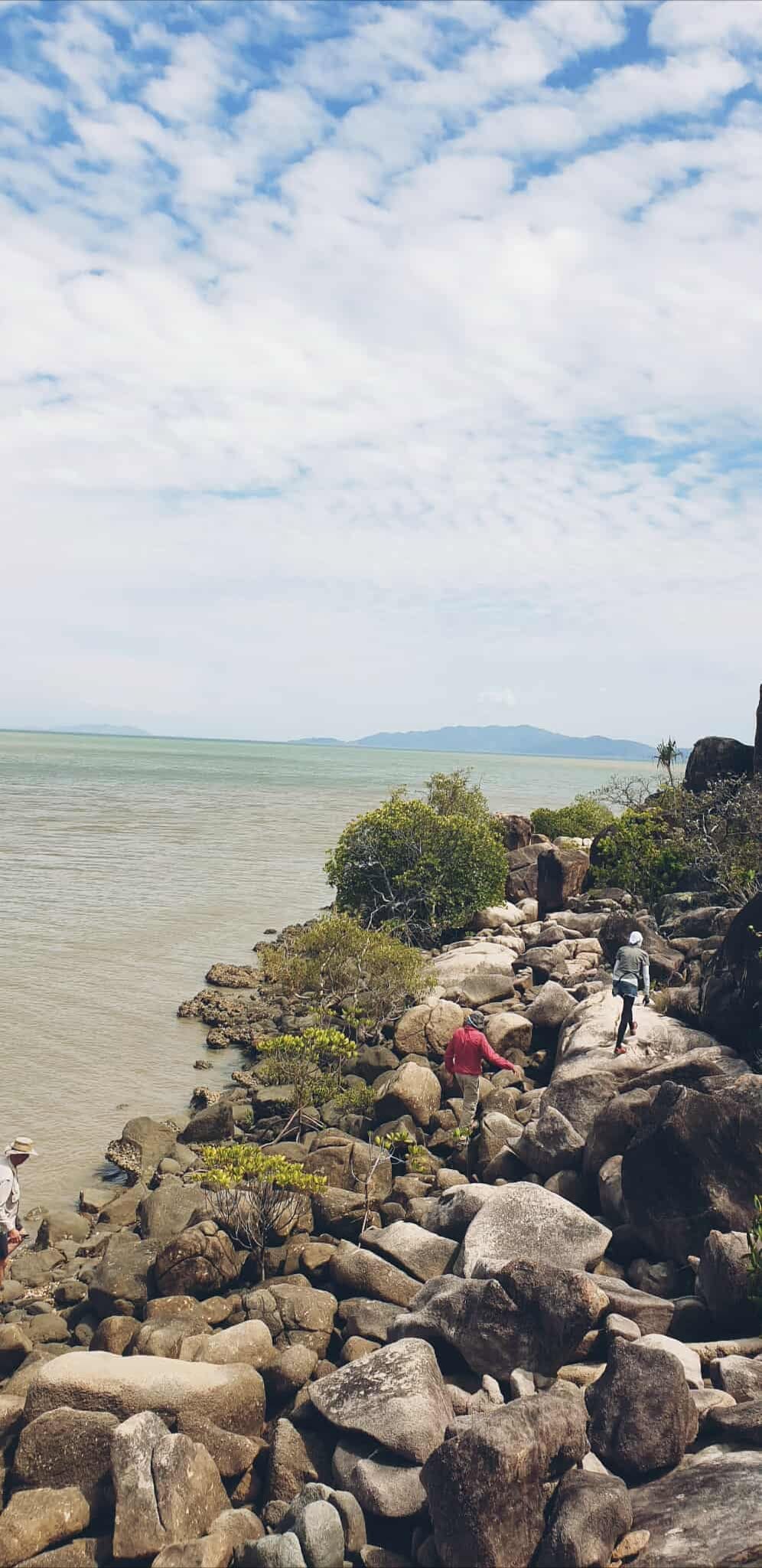 A small group explored the rarely visited western side of Cape Cleveland, with 4x4 thrills, sandy coast walks, mangrove sounds, sea eagles, rock scrambles, and a shady dune lunch before uncovering relics and tamarind treats.